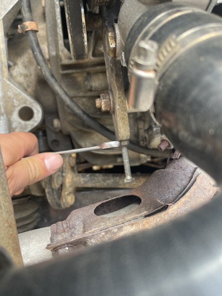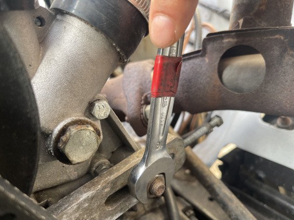 NOTE RENAULT ESTAFETTE : Attention à l'écrou de verrouillage à pas inversé derrière la patte de la poulie.