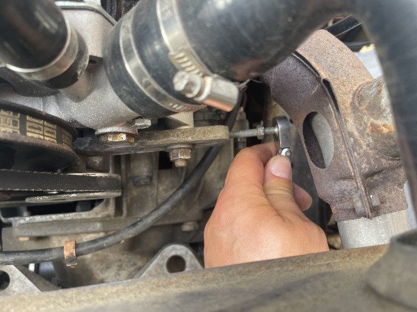 Débloquez le contre écrou de verrouillage du réglage de la position de tension du galet tendeur.