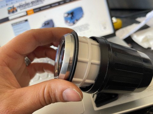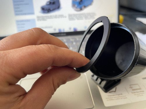 Passez la colerette autour du corps du cadran. Attention, la languette de clipsage doit être vers l'arrière, on la voit en bas de la colerette sur cette image.