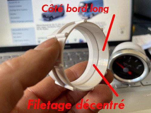 Le filetage sur l'anneau de fixation du cadran est décentré. Pour fixer le cadran sur la colerette, il faudra visser en insérant le bord long en premier.