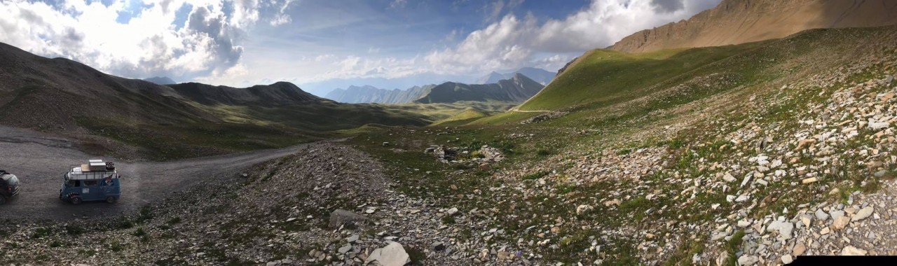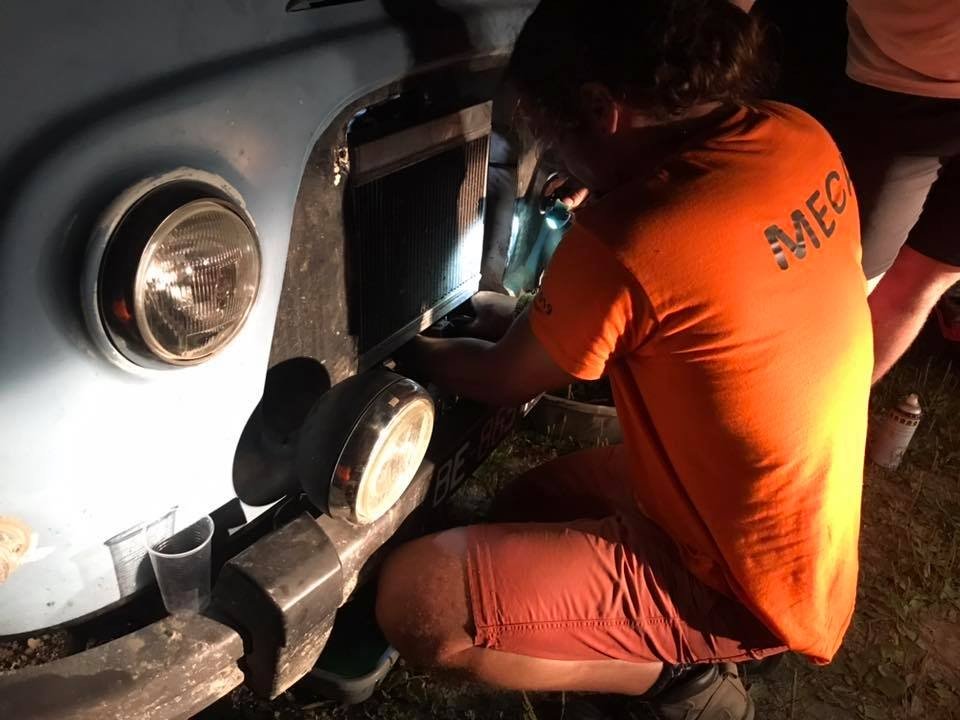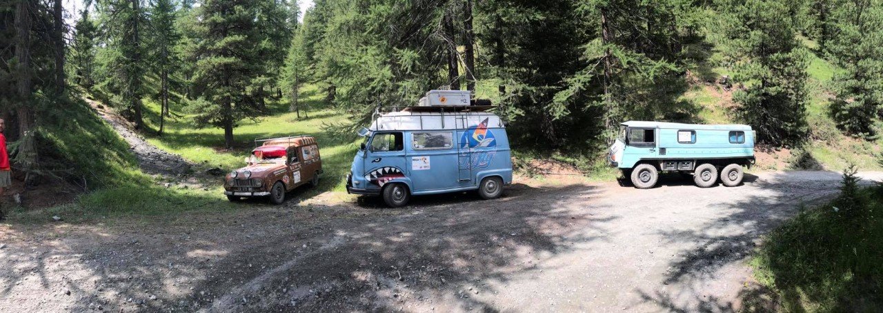 Aucune panne sur l'Estafette, hormis la volute d'air qui a explosée dans le ventilateur :-) Heureusement, Logan, un participant nous a aidé en nous donnant un ventilateur électrique, parce que dans les cols à 18%, le refroidissement...