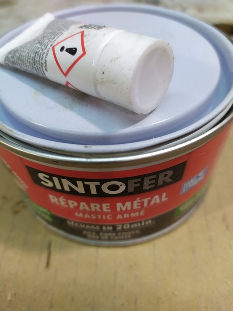 Afin de boucher les creux et les trous et de bloquer les tiges filetées contre les vibrations, j'ai utilisé la résine Sintofer.