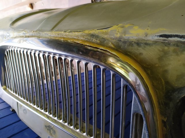 Après de longs moments de ponçage, la calandre est en place dans son écrin et ne semble pas vouloir en sortir.