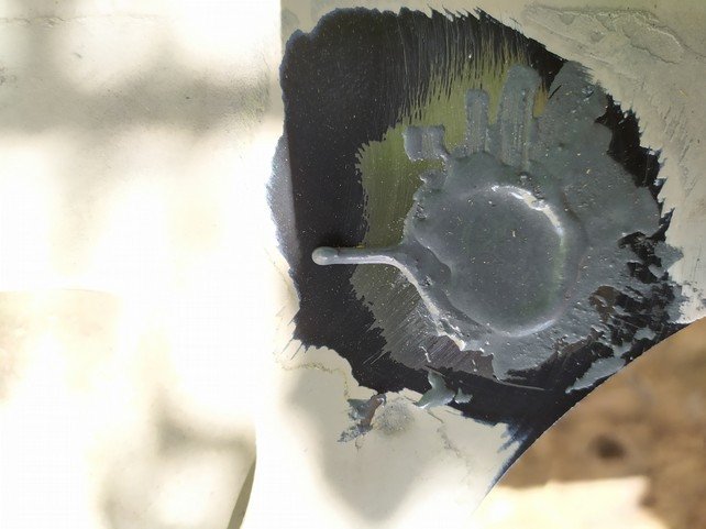 Brossage autour de chaque trou à obstruer. Le métal doit être à nu.