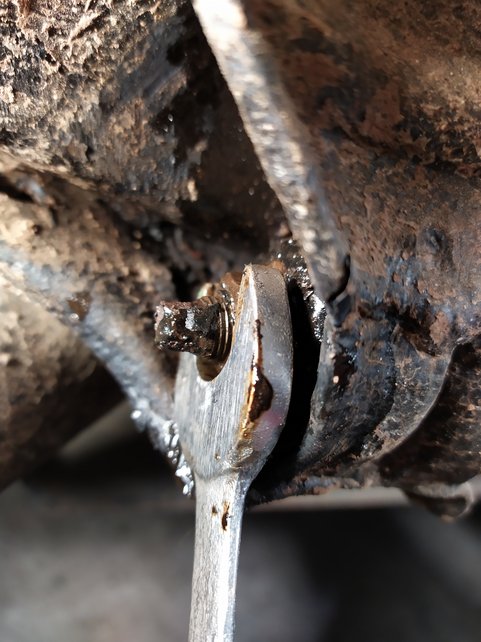 Quelques jours auparavant j'ai appliqué un peu de dégrippant sur les écrous afin de les dévisser facilement plus tard mais aussi lors du démontage.