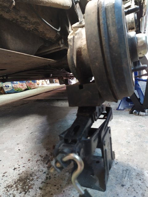 Pour démonter facilement l'autre extrémité de l'amortisseur, je soulève un peu l'ensemble.