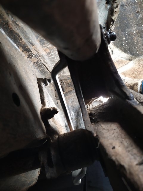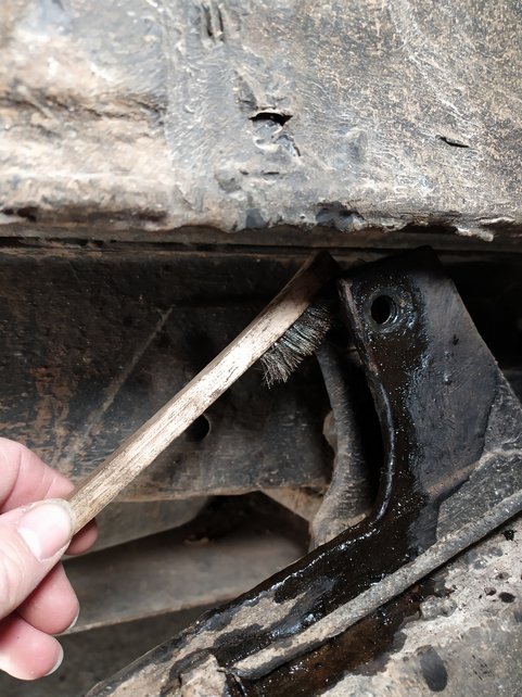 C'est l'occasion de nettoyer les logements des vis pour l'installation du futur amortisseur.