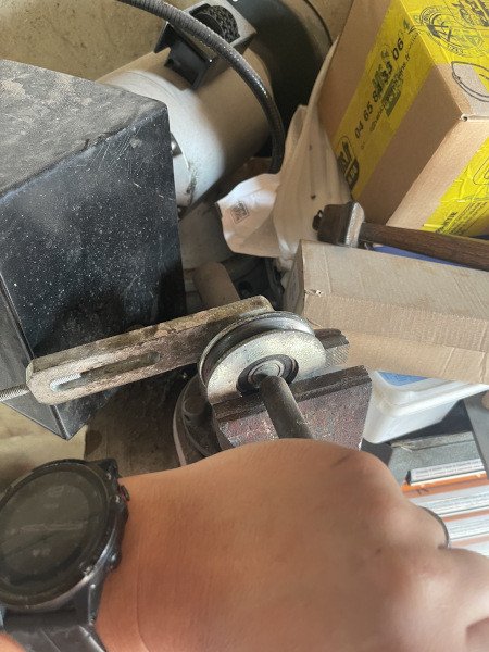 Sur l'étau, positionnez le roulement que vous aurez très légèrement graissé sur la surface extérieure pour faciliter le travail. Positionnez la mise en place entre les mords de l'étau.