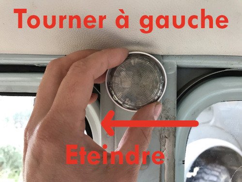 Pour allumer la lumière, tourner simplement le cabochon vers la droite, sans appuyer dessus. Pour l'éteindre, faire tourner le cabochon vers à gauche, sans appuyer dessus.