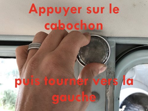 Pour retirer le cabochon afin de changer l'ampoule par exemple, procéder comme suit :