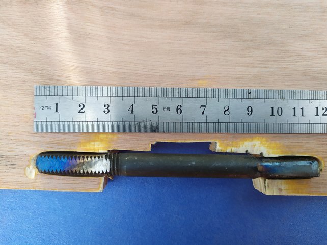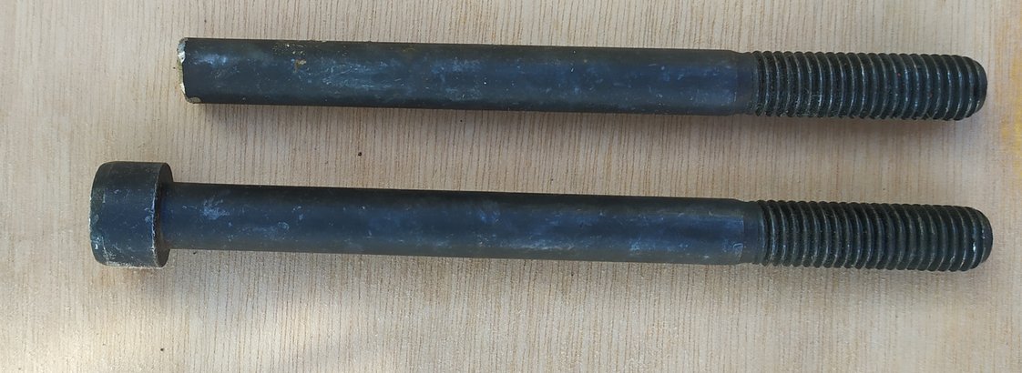 J'ai usiné la vis comme ci dessous. 4 côtés plats. Puis creusé la planche afin d'insérer la vis en force après avoir copieusement mouillé les logements des parties carrées. Désolé j'ai oublié de photographier avant peinture.
