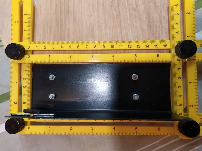 Quant aux haut parleurs, j'ai centré le gabarit puis tracé la découpe et les trous de perçage.