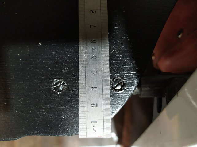 Vu de dessous, on remarque les 2 petits écrous qui maintiennent la vis par la partie carrée.