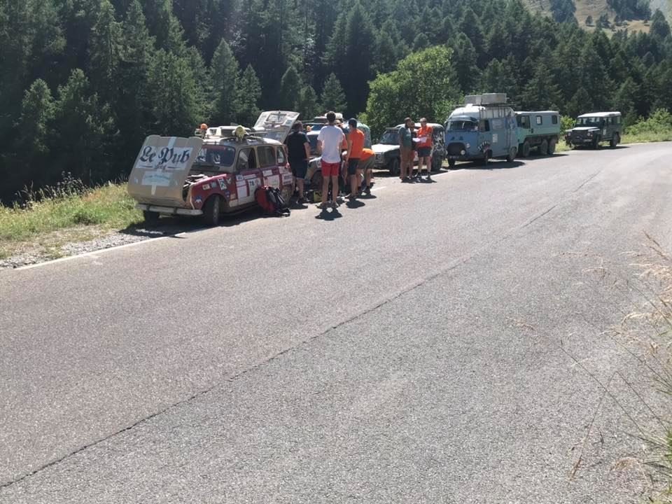 Aucune panne sur l'Estafette, hormis la volute d'air qui a explosée dans le ventilateur :-) Heureusement, Logan, un participant nous a aidé en nous donnant un ventilateur électrique, parce que dans les cols à 18%, le refroidissement...