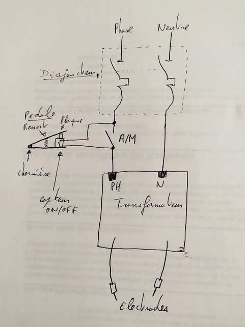 Le bouton A/M pour arrêt / marche reçoit en parallèle une pédale avec un bouton poussoir. Je trouve que c'est plus pratique de commander au pied.