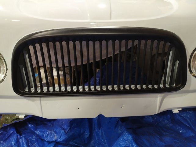 Après de longs moments de ponçage, la calandre est en place dans son écrin et ne semble pas vouloir en sortir.