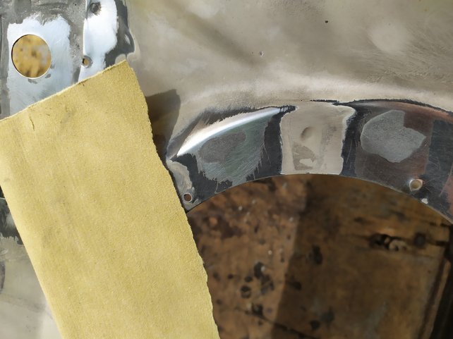 Ne voulant pas être trop agressif, j'ai volontairement utilisé un disque pour le bois sur une petite disqueuse. Ensuite j'ai terminé au papier de verre à la main.