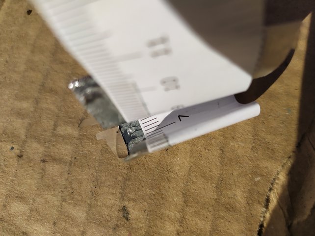 Pour positionner cette pièce plus facilement, j'ai collé un morceau de scotch double face.