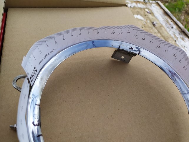 Positionnement des « griffes ». Il y en a 3 par enjoliveur. Le zéro du super mètre (merci IKEA) démarre au milieu de la patte de l'enjoliveur.